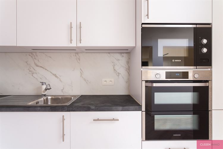 Op het gelijkvloers kom je binnen in een lichtrijke leefruimte met gashaard, perfect voor knusse avonden. Achteraan bevindt zich de keuken met veel kastruimte voorzien van een inductiekookplaat, dampkap, vaatwasser, oven en micro-oven. Verder is er een afzonderlijk toilet en berging voor wasmachine.